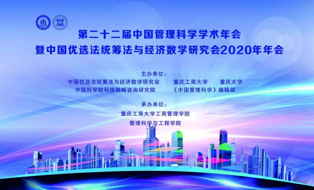 2020年11月13日至2020年11月16日,物联网基地钱吴永副教授、季春艺副教授、刘震博士以及硕士研究生代表吴栋栋、廖长华等十四人受邀参加第二十二届中国管理科学学术年会暨中国优选法统筹法与经济数学研究会。本次大会由中国优选法统筹法与经济数学研究会、重庆工商大学、重庆大学、中国科学院科技战略咨询研究院、《中国管理科学》编辑部主办,重庆工商大学工商管理学院、重庆工商大学管理科学与工程学院承办,在重庆工商大学隆重召开。